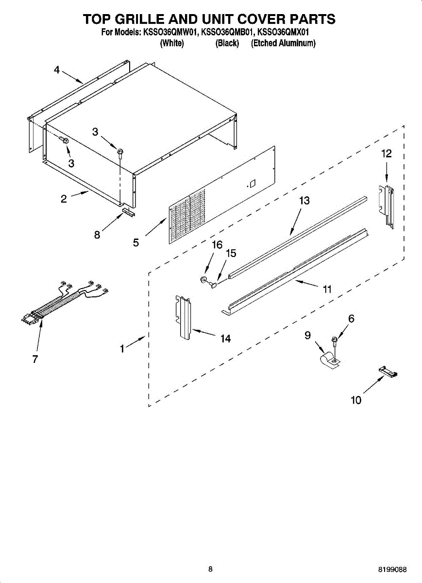 This screw is used to secure the handle end cap to the center of the door. The screw size measures 8-18 x 1/2 inches.