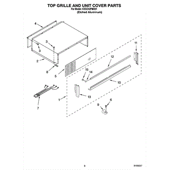 This screw is used to secure the handle end cap to the center of the door. The screw size measures 8-18 x 1/2 inches.
