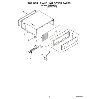 This screw is used to secure the handle end cap to the center of the door. The screw size measures 8-18 x 1/2 inches.