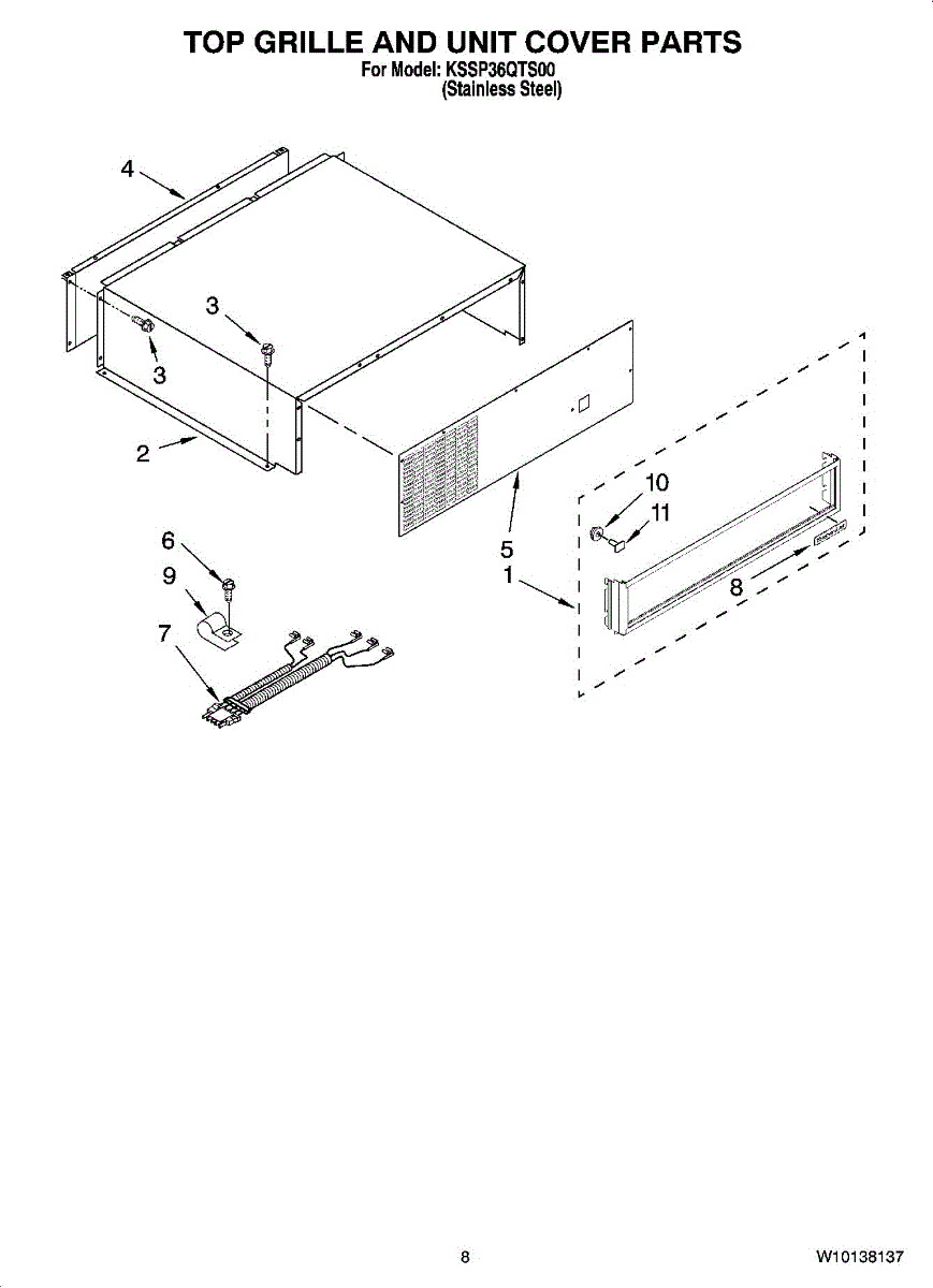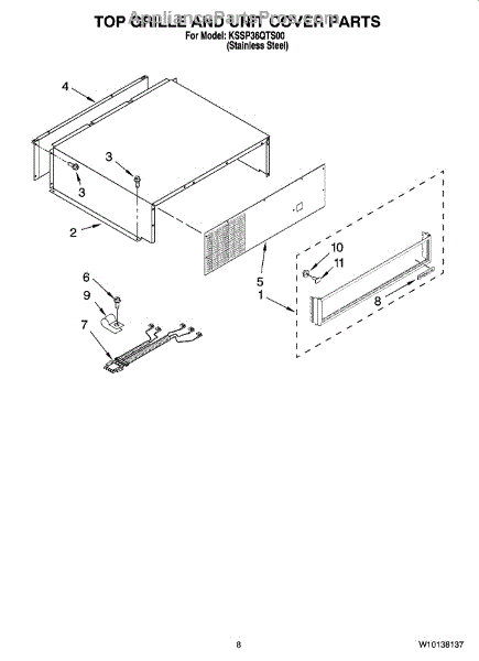 This replacement cover-unit restores the appliance's outer cabinet appearance and protects internal components from dust and debris. It provides a clean finished look and helps keep controls and wiring shielded from accidental contact. What it does