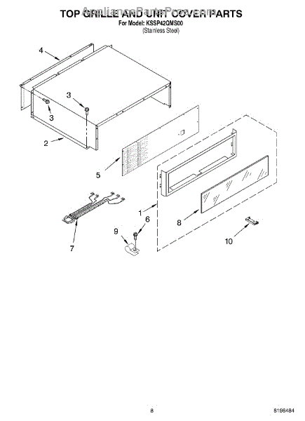This screw is used to secure the handle end cap to the center of the door. The screw size measures 8-18 x 1/2 inches.