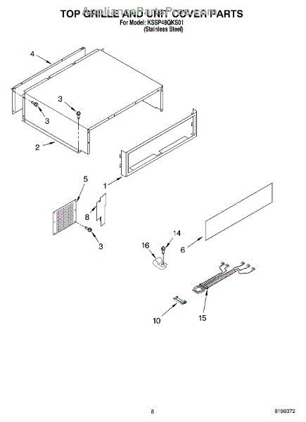This screw is used to secure the handle end cap to the center of the door. The screw size measures 8-18 x 1/2 inches.