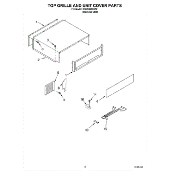 This screw is used to secure the handle end cap to the center of the door. The screw size measures 8-18 x 1/2 inches.
