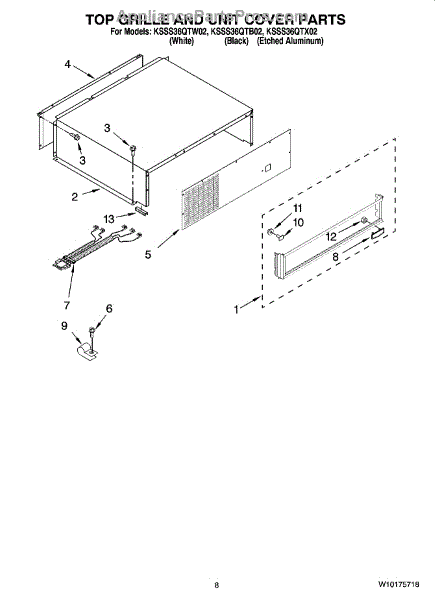 Parts for Kitchenaid KSSS36QTW02: 06 - Top Grille And Unit Cover Parts