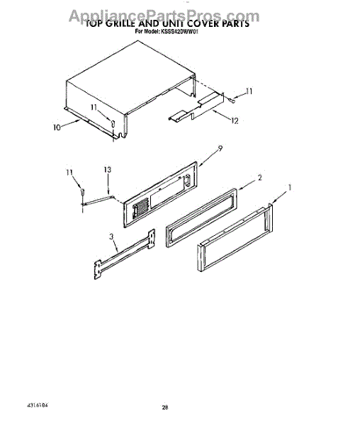 Parts for Kitchenaid KSSS42DWW01: 18 - Top Grille And Unit Cover Parts
