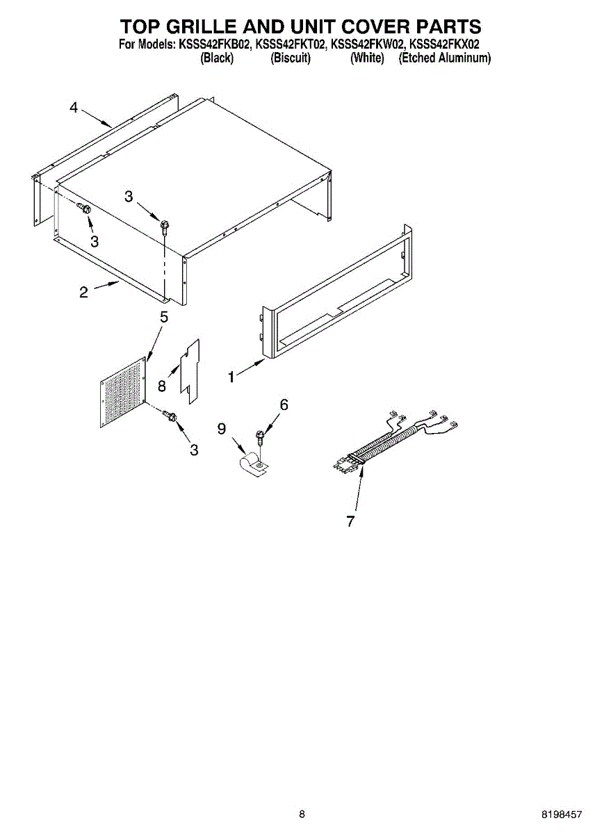 This screw is used to secure the handle end cap to the center of the door. The screw size measures 8-18 x 1/2 inches.