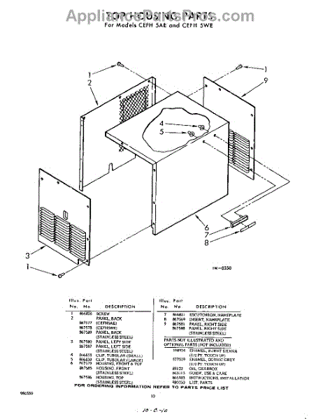 Parts for Whirlpool CEFH5AE: 10 - Top Housing, Lit / Optional Parts
