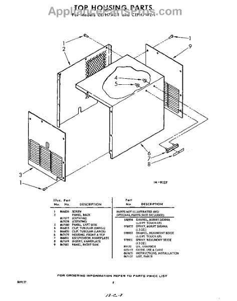 Parts for Whirlpool CEFH7WE1: 08 - Top Housing, Lit / Optional Parts