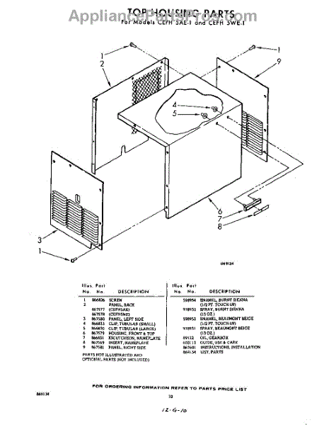 Parts for Whirlpool CEFH5AE1: 10 - Top Housing Parts