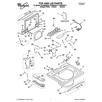 This lid hinge pad fits between the washer lid hinge and the cabinet. It cushions the joint to reduce squeaks and metal wear, helping keep the lid aligned and operating smoothly.