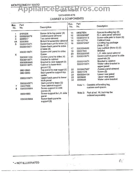 Parts for Frigidaire 6506-87E: Top Load Washer-Cabinet And Componets Page 2 Parts