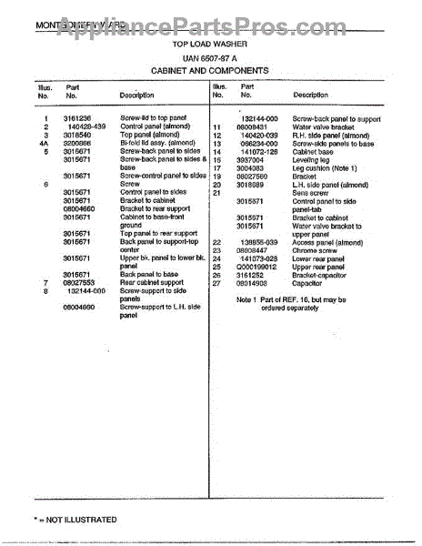 Parts for Frigidaire 6507-87A: Top Load Washer / Cabinet And Componets Page 2 Parts