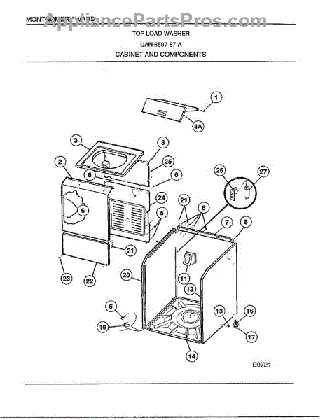 Parts for Frigidaire 6507-87A: Top Load Washer / Cabinet And Componets Parts