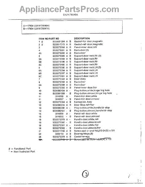 Parts for Frigidaire 178040A: Top Mount Refrigerator Page 3 Parts