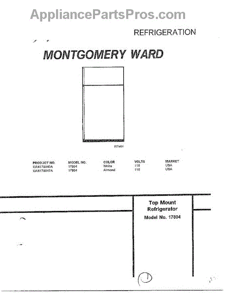 Parts for Frigidaire 178047A: Top Mount Refrigerator Parts