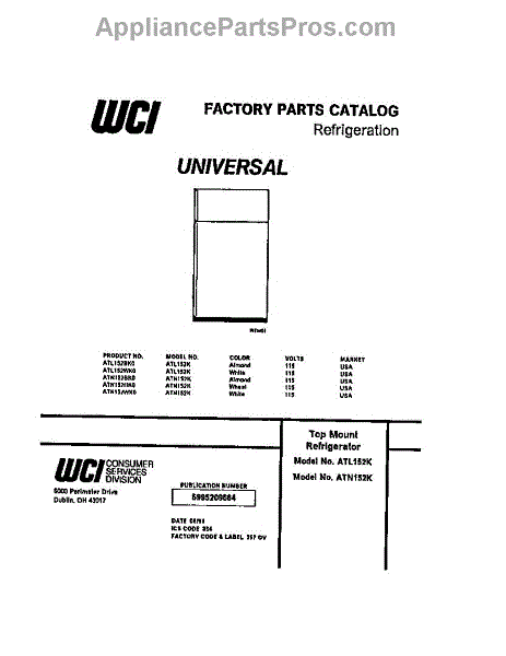 Parts for Frigidaire ATL152HK0: 01 - Top Mount Refrigerator Parts