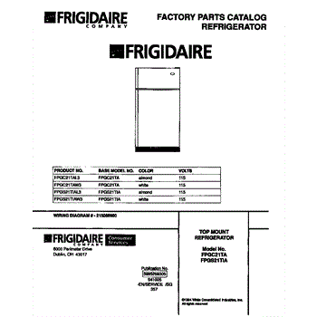 Parts for Frigidaire FPGC21TAL3: 01 - Top Mount Refrigerator Parts