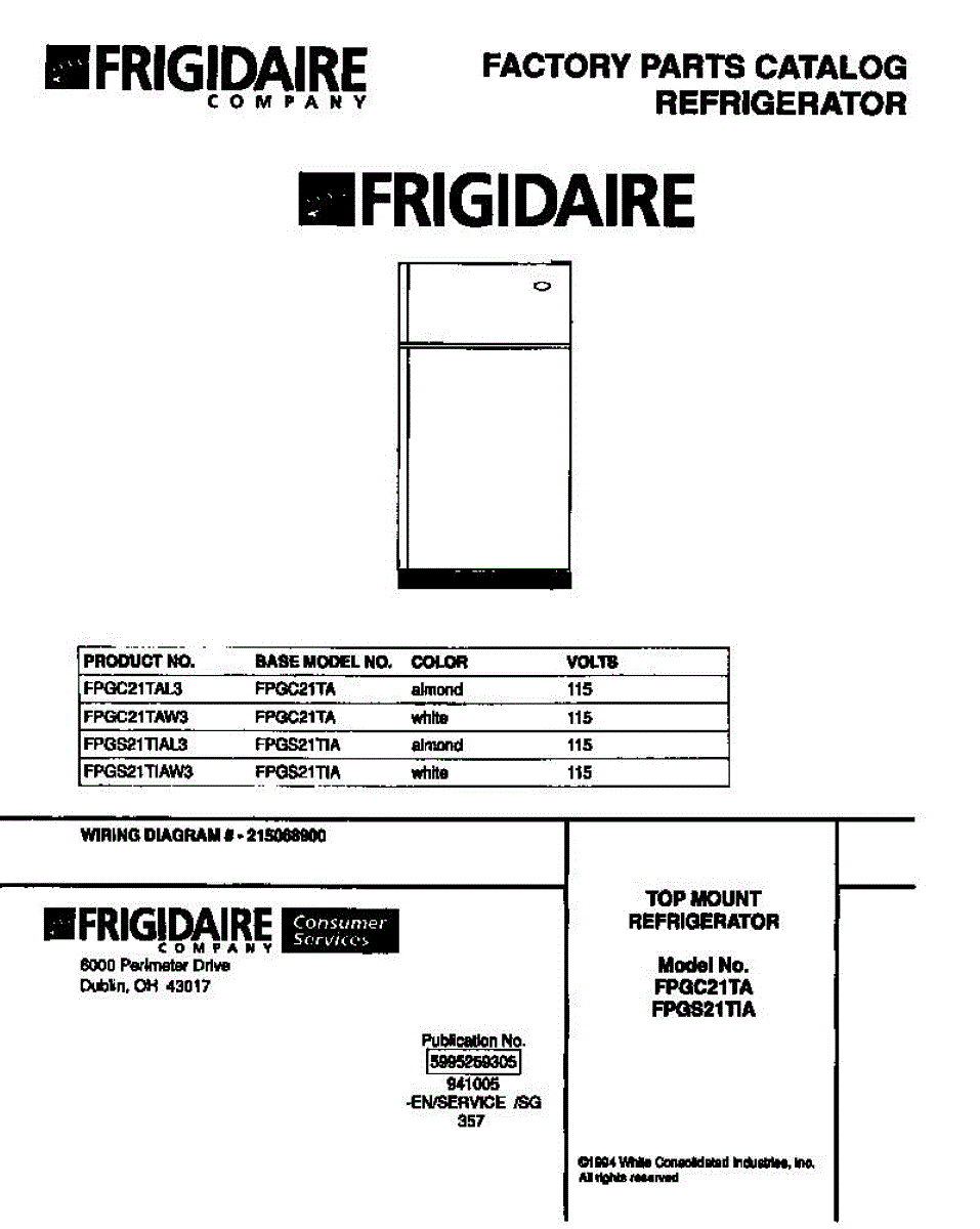 Parts for Frigidaire FPGS21TIAL3: 01 - Top Mount Refrigerator Parts