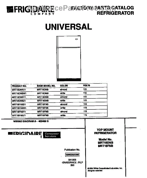 Parts for Frigidaire MRT18DNBW1: 01 - Top Mount Refrigerator Parts