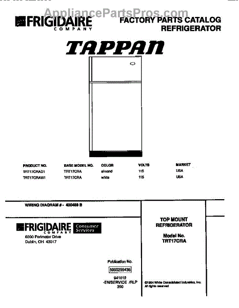 Parts for Frigidaire TRT17CRAD1: 01 - Top Mount Refrigerator Parts