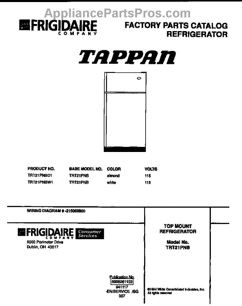 Parts for Frigidaire TRT21PNBD1: 01 - Top Mount Refrigerator Parts