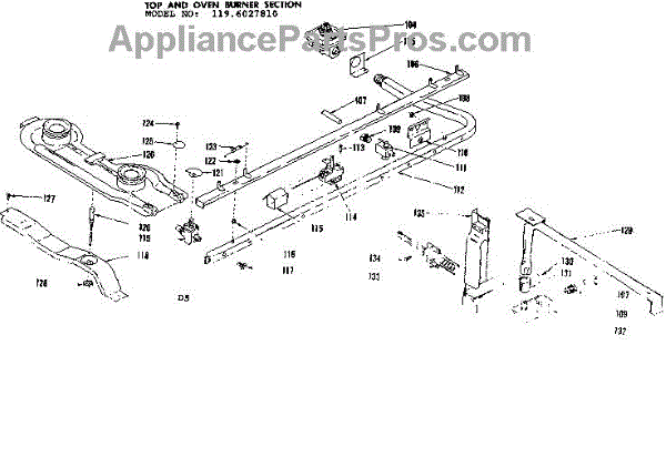 Parts for Kenmore 119.6027810 (1196027810, 119 6027810): Top And Oven Burner Section Parts