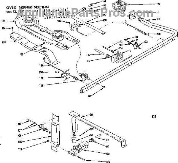 Parts for Kenmore 119.7447611 (1197447611, 119 7447611): Top And Oven Burner Section Parts
