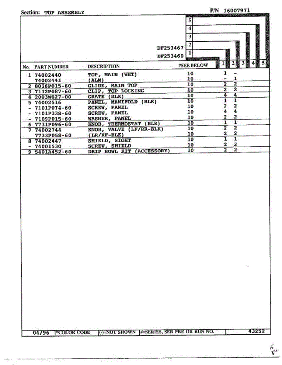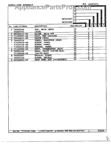 This factory screw secures appliance components to their mounting points. Replace missing, worn, or stripped hardware to restore a tight fit, proper alignment, and quieter operation across the affected assembly.