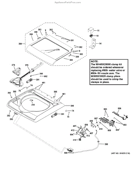 This lid lock assembly secures the top-load washer lid and reports lid status to the control. Replacing a worn or failed lock restores safe spin operation and stops cycle interruptions caused by the lid not being detected or locked.