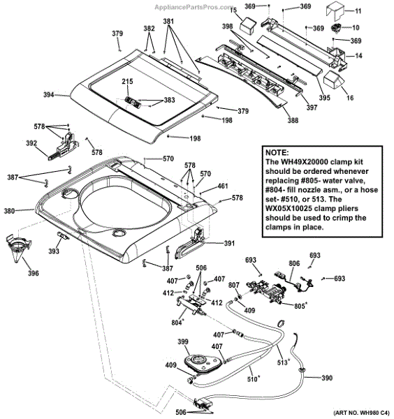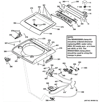 This lid lock assembly secures the top-load washer lid and reports lid status to the control. Replacing a worn or failed lock restores safe spin operation and stops cycle interruptions caused by the lid not being detected or locked.