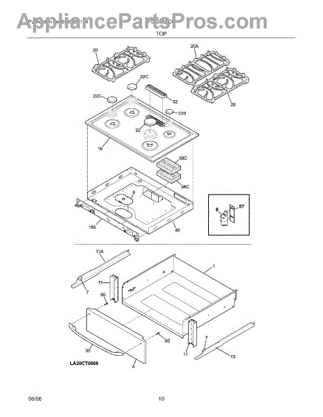 This main top is the cooktop surface panel that covers and supports burners and control components, restoring a clean, level cooking surface and protecting the range interior from spills and debris. What it does