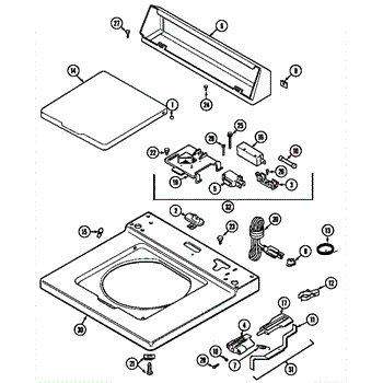 The Lid Switch Assembly is an OEM part for Whirlpool washing machines. This assembly includes two switches, a bracket, and a fuse. It is responsible for detecting whether the lid is securely shut, allowing the washer to proceed with the selected wash cycles.