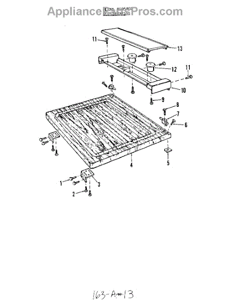 This factory screw secures appliance components to their mounting points. Replace missing, worn, or stripped hardware to restore a tight fit, proper alignment, and quieter operation across the affected assembly.