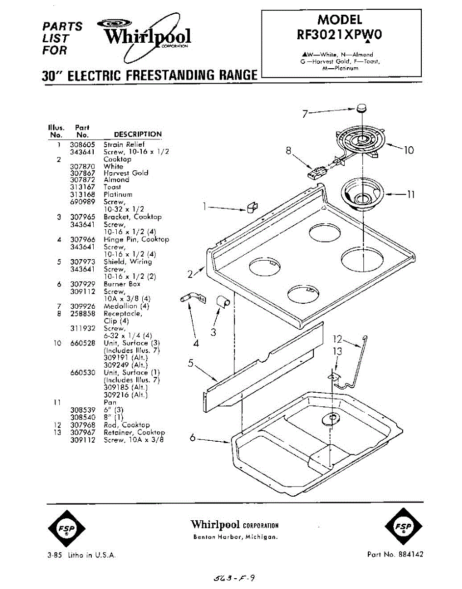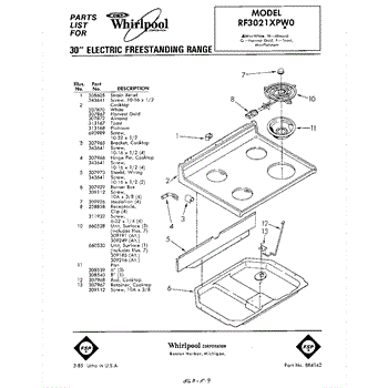 Parts for Whirlpool RF3021XPW0: 01 - Top Parts