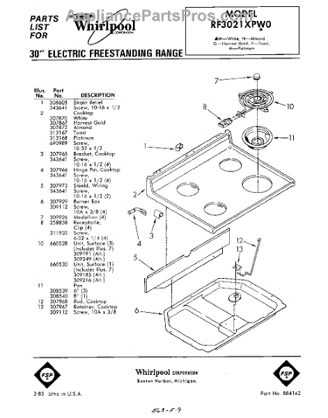 Whirlpool Range Parts