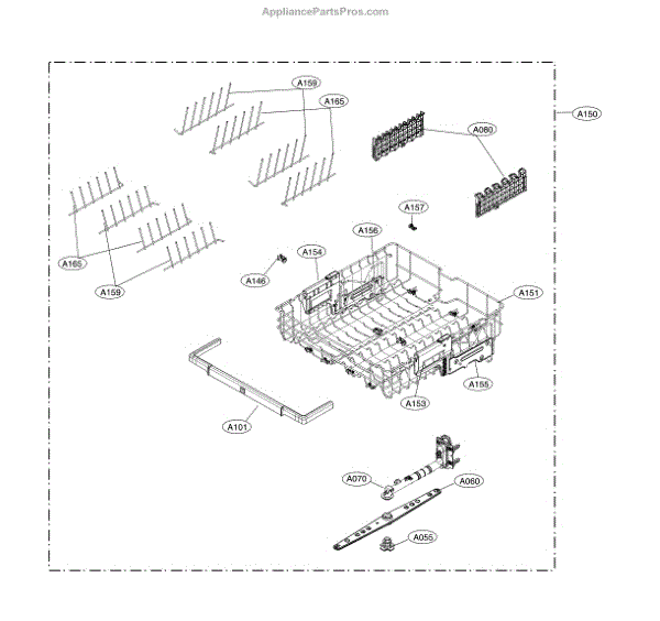 The Rack is an OEM part for LG dishwashers. It provides an adjustable configuration of prongs and wires to effectively wash a variety of dirty dishes. As the main washing component inside the dishwasher, the rack is purposely designed to lift and tilt dishes to maximize water coverage.