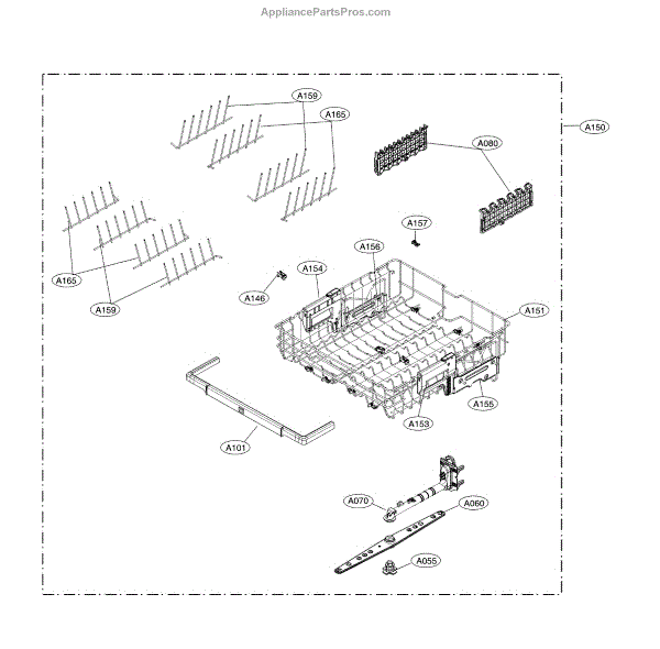 The Rack Assembly is an OEM part for LG dishwashers. It is the rack that holds dishes, glassware, utensils, and cookware during the wash cycle.
