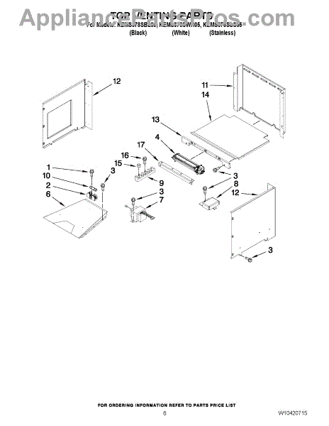 Parts for Kitchenaid KEMS378SBL05: 05 - Top Venting Parts