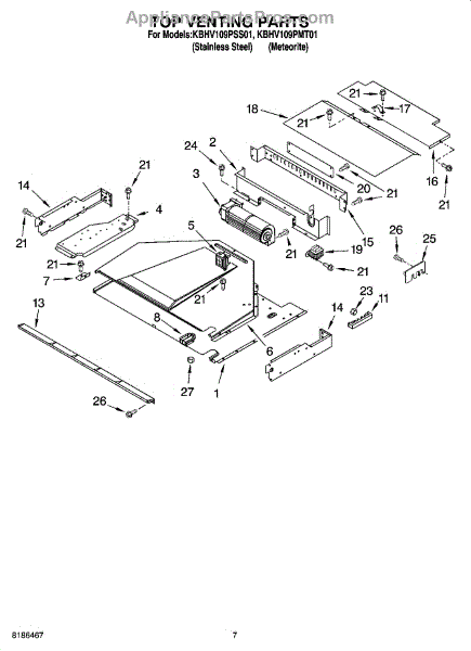 Parts for Kitchenaid KBHV109PMT01: 05 - Top Venting Parts