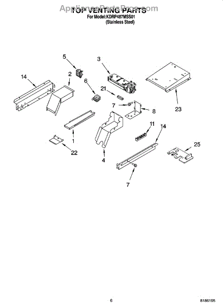 Parts for Kitchenaid KDRP487MSS01: 05 - Top Venting Parts