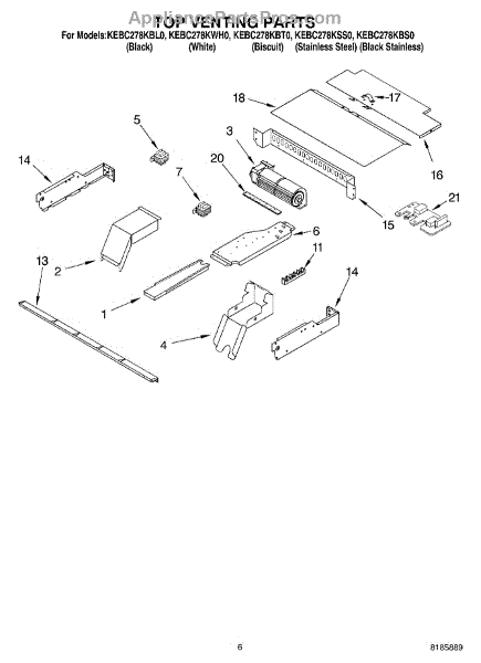 Parts for Kitchenaid KEBC278KSS0: 05 - Top Venting Parts