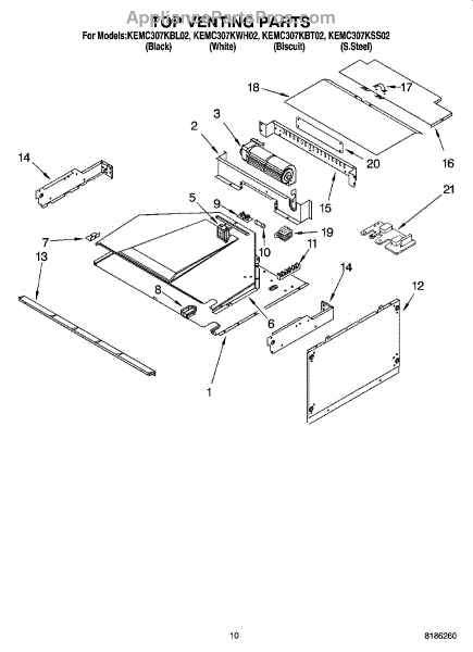 Parts for Kitchenaid KEMC307KWH02: 08 - Top Venting Parts