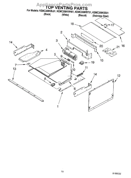 Parts for Kitchenaid KEMC308KBL01: 08 - Top Venting Parts