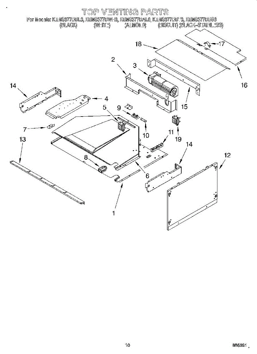 Parts for Kitchenaid KEMS377DBS6: 08 - Top Venting Parts