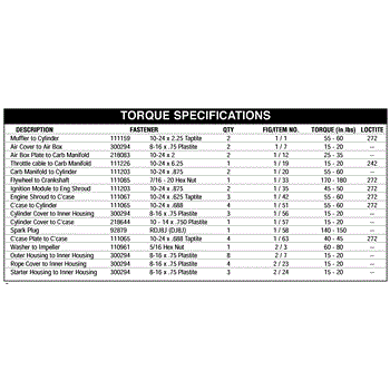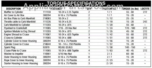 Parts for Mcculloch 41AR320G077: Torque Specifications Parts
