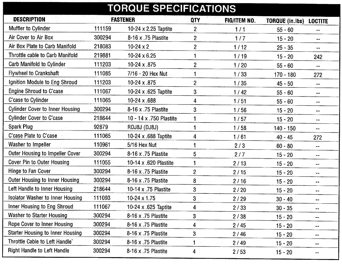 Parts for Mcculloch 41AS321G077: Torque Specifications Parts