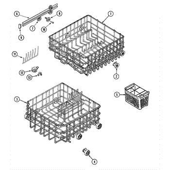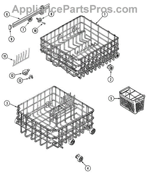 This is an upper dish rack assembly for dishwashers. It is located in the top section of the dishwasher and is meant to ensure dishes stay in place while the dishwasher is running. The dish rack assembly is durable but can experience damage, stains, or other issues. This may make it unsuitable for holding dishes in the appliance. If the part is damaged or malfunctioning, it should be replaced with a new part.This is a simple replacement that takes only a few minutes to complete. First, open up the dishwasher. Remove the bottom rack if desired to create more room to work with the upper dish rack assembly. Take a small flathead screwdriver and use it to release the retaining tabs located on the stop clips. Remove the stop clips and the old dish rack assembly will slide out. Align the new assembly and slide it into place before reassembling other small parts.This upper dish rack assembly is used as an authentic OEM replacement part for dishwashers manufactured by Maytag, Norge, Jenn Air, Admiral, Amana, Crosley, and Magic Chef. The part is sold as an individual component.