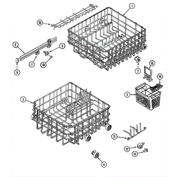 This is an upper dish rack assembly for dishwashers. It is located in the top section of the dishwasher and is meant to ensure dishes stay in place while the dishwasher is running. The dish rack assembly is durable but can experience damage, stains, or other issues. This may make it unsuitable for holding dishes in the appliance. If the part is damaged or malfunctioning, it should be replaced with a new part.This is a simple replacement that takes only a few minutes to complete. First, open up the dishwasher. Remove the bottom rack if desired to create more room to work with the upper dish rack assembly. Take a small flathead screwdriver and use it to release the retaining tabs located on the stop clips. Remove the stop clips and the old dish rack assembly will slide out. Align the new assembly and slide it into place before reassembling other small parts.This upper dish rack assembly is used as an authentic OEM replacement part for dishwashers manufactured by Maytag, Norge, Jenn Air, Admiral, Amana, Crosley, and Magic Chef. The part is sold as an individual component.