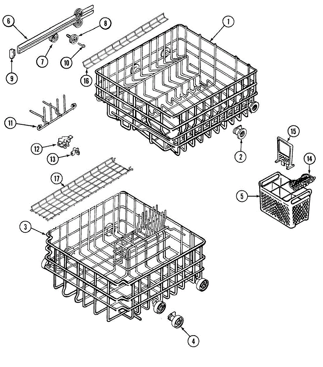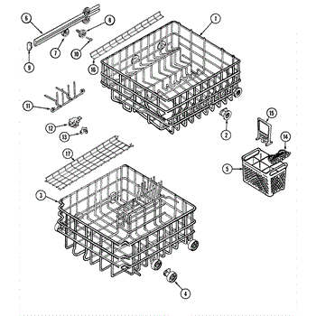 This is an upper dish rack assembly for dishwashers. It is located in the top section of the dishwasher and is meant to ensure dishes stay in place while the dishwasher is running. The dish rack assembly is durable but can experience damage, stains, or other issues. This may make it unsuitable for holding dishes in the appliance. If the part is damaged or malfunctioning, it should be replaced with a new part.This is a simple replacement that takes only a few minutes to complete. First, open up the dishwasher. Remove the bottom rack if desired to create more room to work with the upper dish rack assembly. Take a small flathead screwdriver and use it to release the retaining tabs located on the stop clips. Remove the stop clips and the old dish rack assembly will slide out. Align the new assembly and slide it into place before reassembling other small parts.This upper dish rack assembly is used as an authentic OEM replacement part for dishwashers manufactured by Maytag, Norge, Jenn Air, Admiral, Amana, Crosley, and Magic Chef. The part is sold as an individual component.