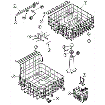 This is an upper dish rack assembly for dishwashers. It is located in the top section of the dishwasher and is meant to ensure dishes stay in place while the dishwasher is running. The dish rack assembly is durable but can experience damage, stains, or other issues. This may make it unsuitable for holding dishes in the appliance. If the part is damaged or malfunctioning, it should be replaced with a new part.This is a simple replacement that takes only a few minutes to complete. First, open up the dishwasher. Remove the bottom rack if desired to create more room to work with the upper dish rack assembly. Take a small flathead screwdriver and use it to release the retaining tabs located on the stop clips. Remove the stop clips and the old dish rack assembly will slide out. Align the new assembly and slide it into place before reassembling other small parts.This upper dish rack assembly is used as an authentic OEM replacement part for dishwashers manufactured by Maytag, Norge, Jenn Air, Admiral, Amana, Crosley, and Magic Chef. The part is sold as an individual component.